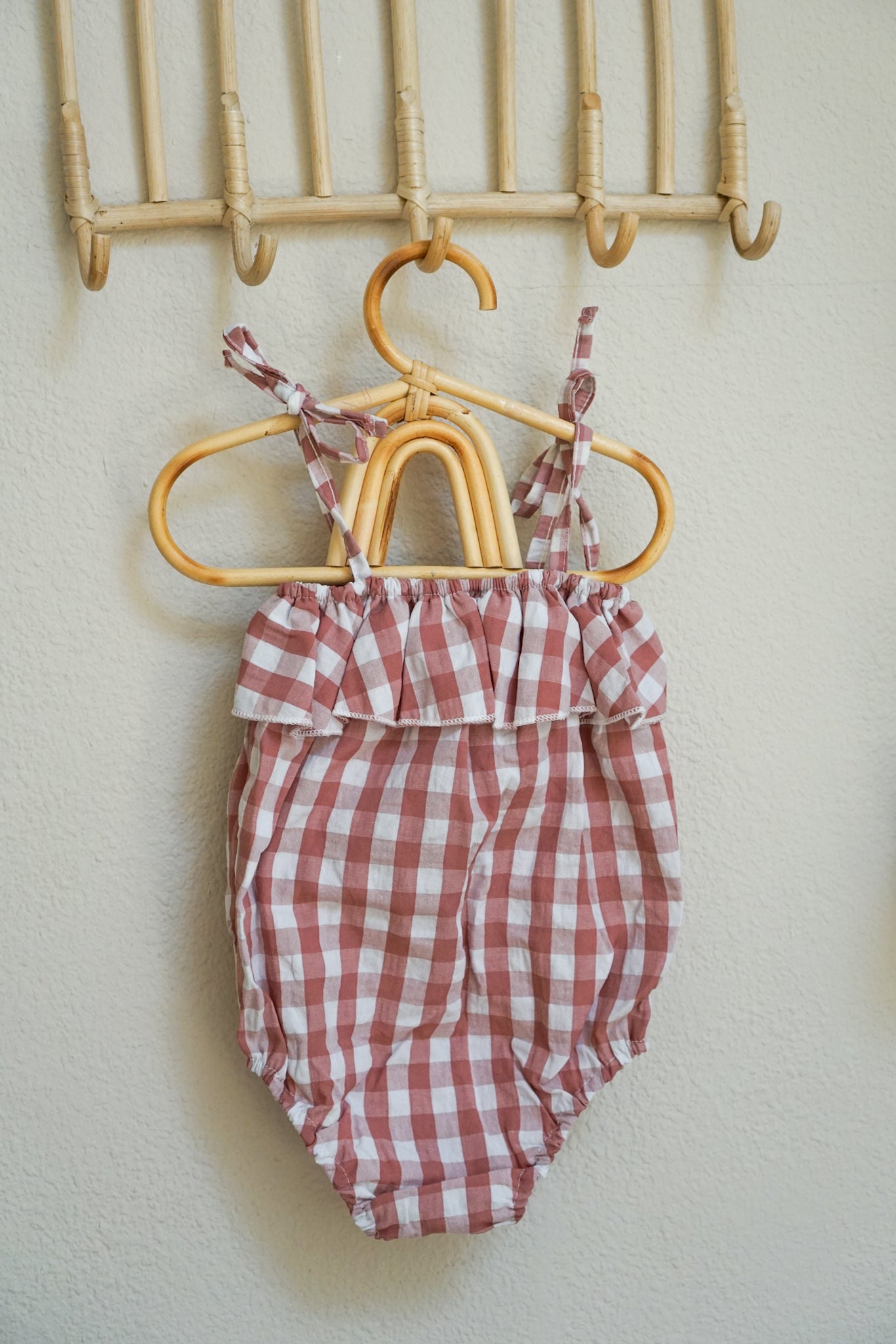 Our Rose Plaid Romper was made for summer picnics and strolls through the garden. Complete the look with our matching head bow.