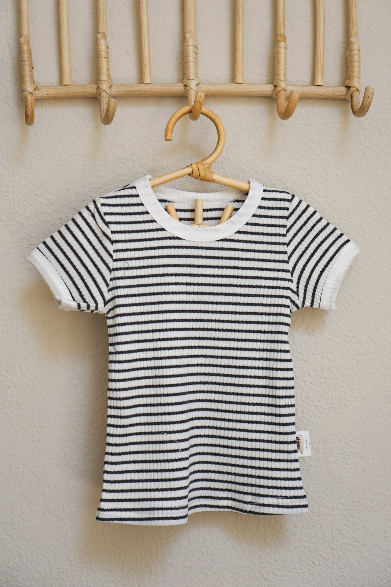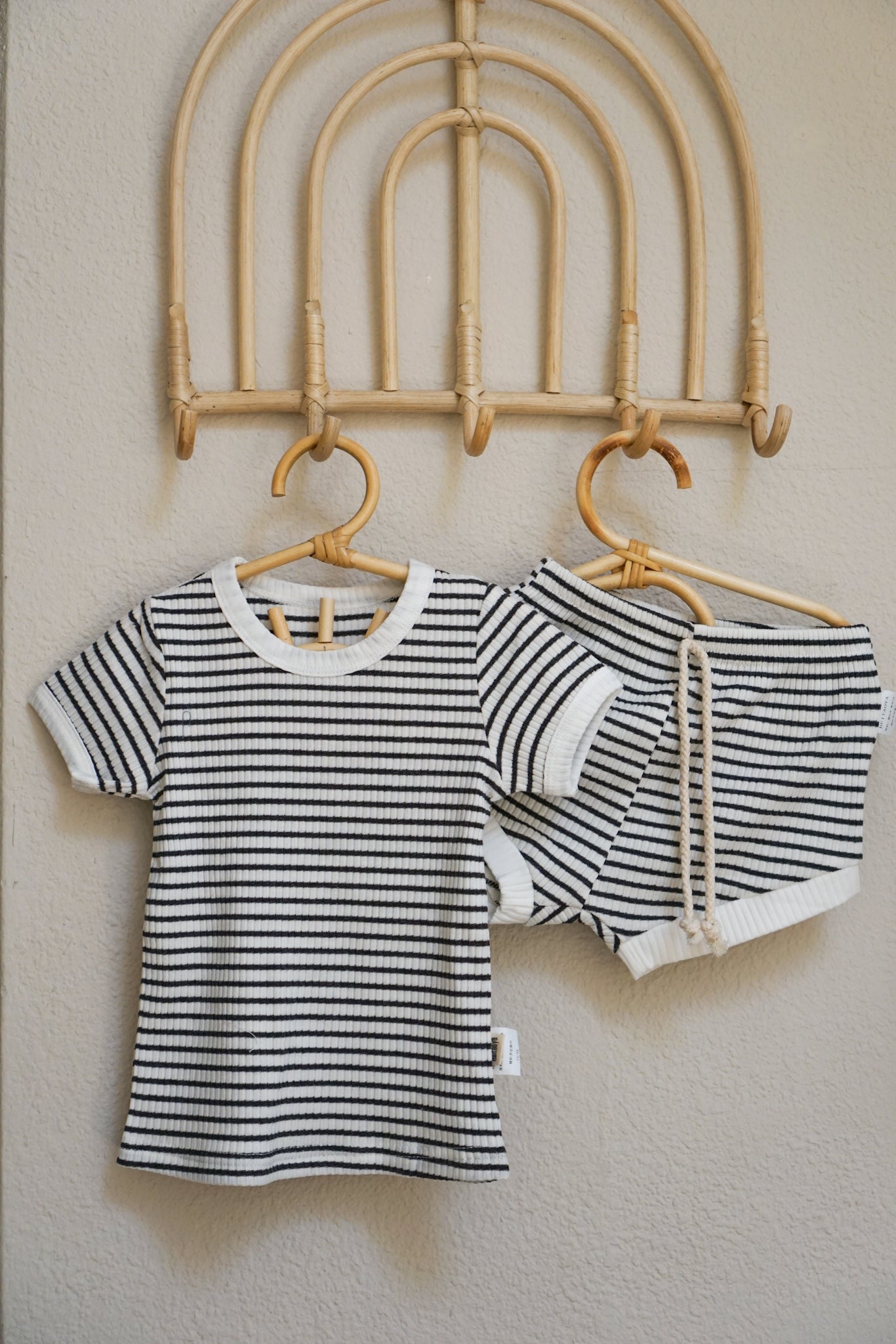 Our Indigo Striped Ribbed Shortie Set is the perfect outfit to wear with your little as you run errands around town! Ties on short are decorative.