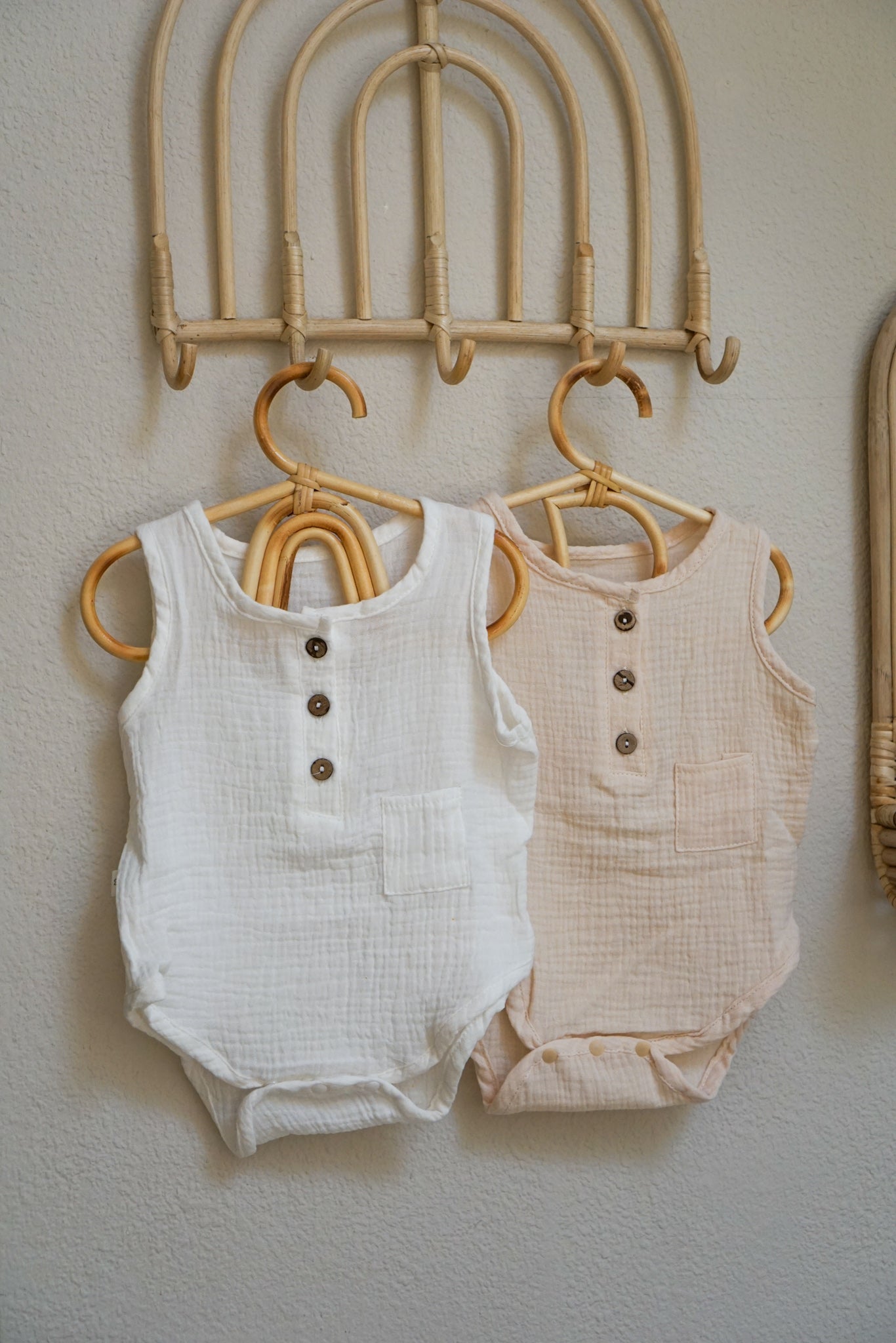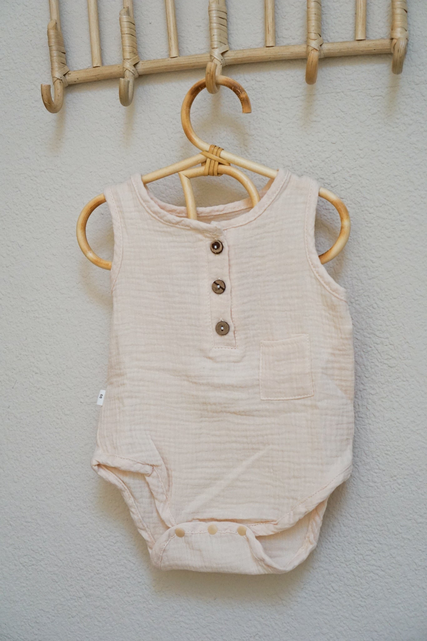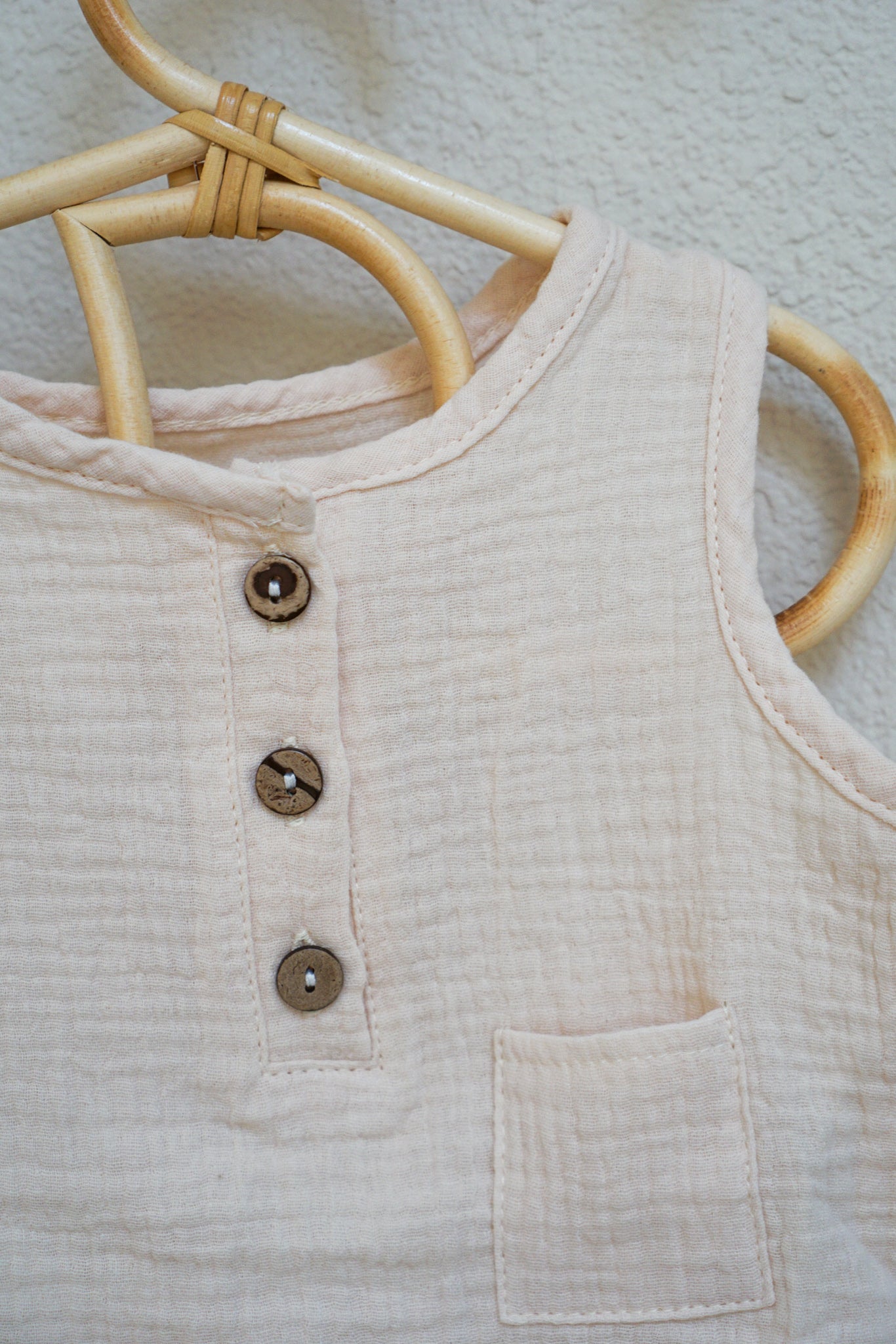 Our Oat Sleeveless Romper is the perfect basic for your little one to wear to make day to day tasks go by smoothly. Our button snaps make for easy diaper changes!