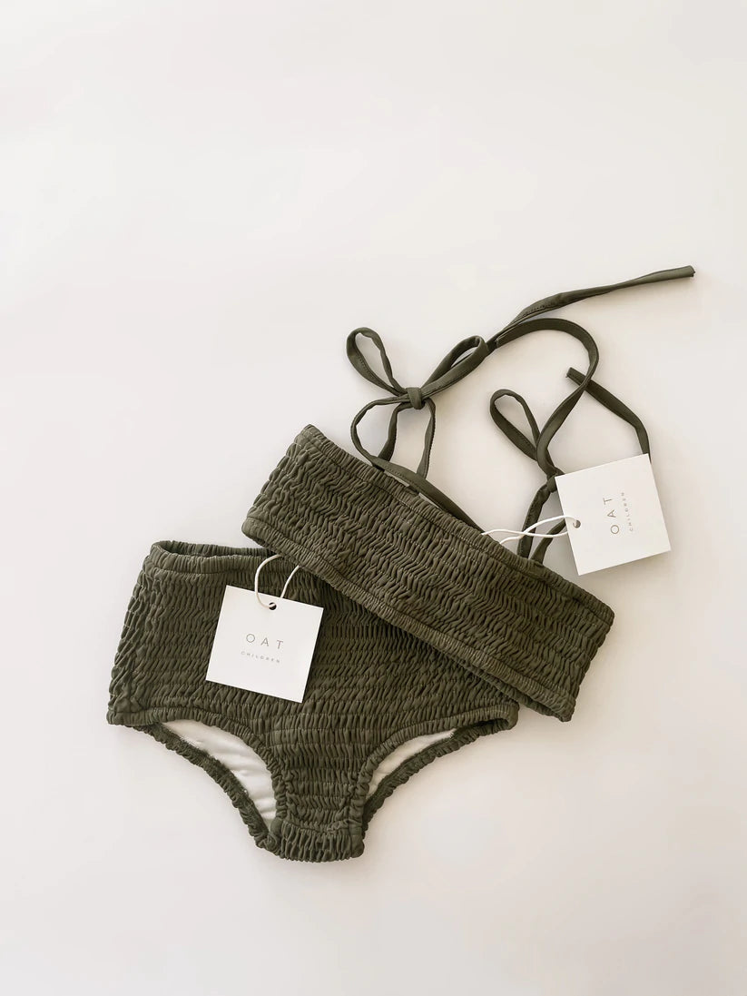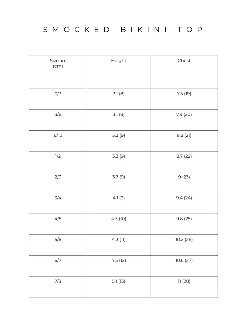 Summertime dreams! This smocked bikini top is the perfect swim piece for their summer wardrobe. It's an absolutely timeless capsule piece made for beach days and pool lounging. Made of soft material and fully lined for ultimate comfort and quality. The material gives both the tops and bottoms an amazing amount of stretch making them extremely versatile.